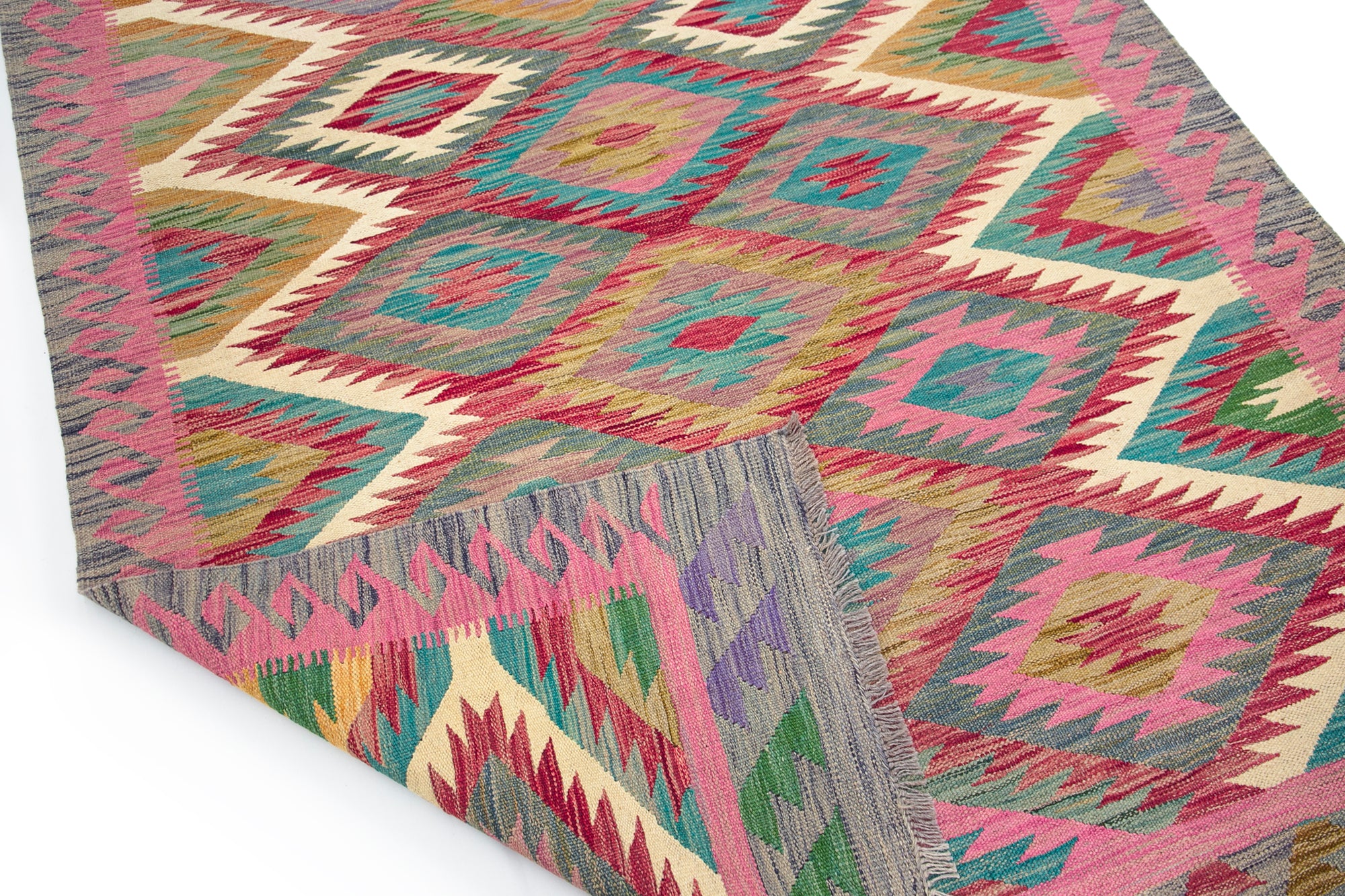 Afghan Meimana Kilim rug, handmade with naturally dyed wool.